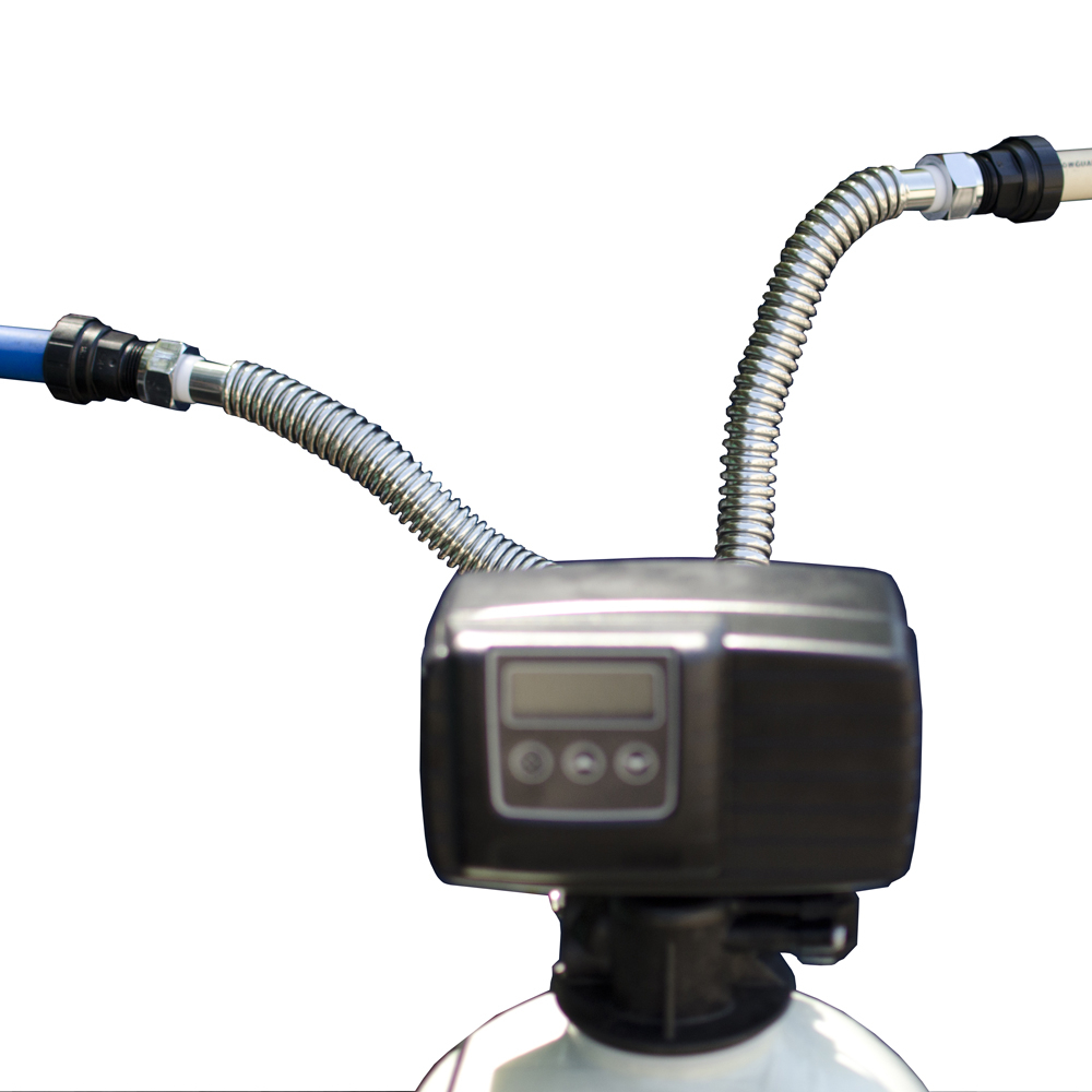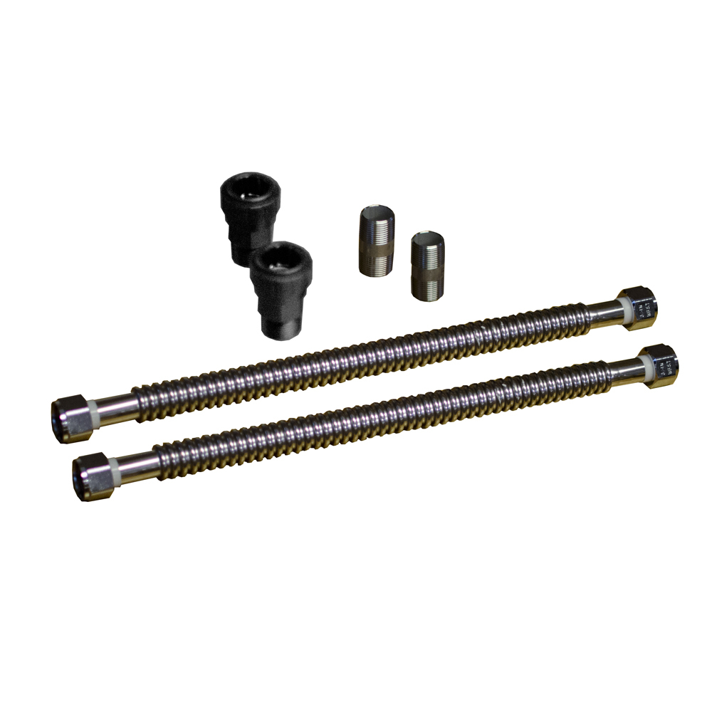 A 1” X 3/4" Quick Flex connection package with (2) 1” X 3/4" HOLDRITE Quick Flex Water Connectors, (2) 1” nipples, (2) 3/4"” John Guest Speedfit fittings, and a roll of Teflon tape. These Quick Flex connections allow you to add a filtration accessory to your existing system with ease.