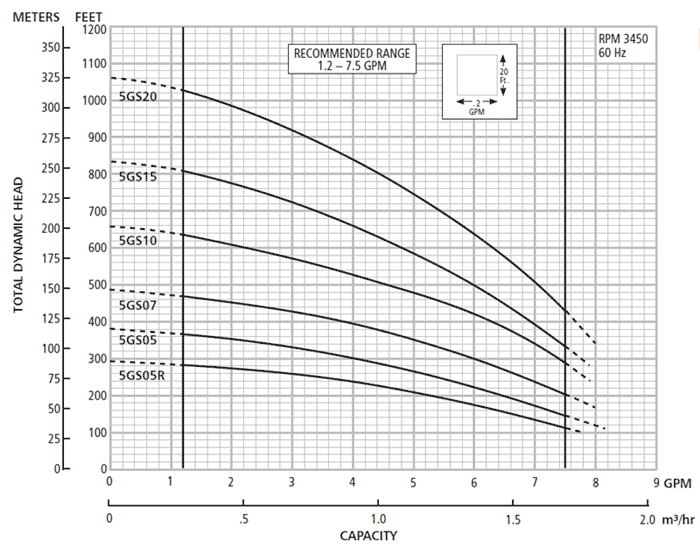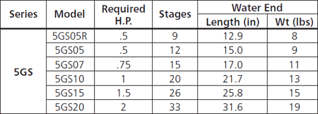 Refer to the Goulds Performance Chart 5GS for detailed performance metrics.