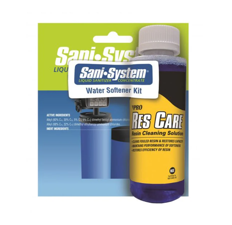 Water Softener Clean & Sanitize Kit: Contains (1) 0.5 oz Sani-System & (1) 4 oz Res Care